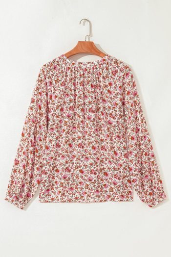 Women Red Floral Print Pleated Detail Notched Neck Puff Sleeve Blouse | Blouses